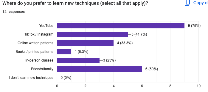Overall, the results supported what I suspected: people craft because it feels good—emotionally, creatively, and mentally. The biggest barriers aren’t desire, but access and confidence. The more we can demystify crafting for beginners, the more people will feel empowered to try it.