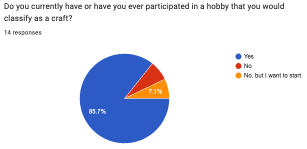 Crafting has exploded across TikTok and Instagram, from crochet to quilting to embroidery. But I wanted to understand why people start crafting—and just as importantly, what stops them. To explore this, I ran a short anonymous Google Forms poll with 14 respondents from my personal and professional networks. The poll included eight neutral, unbiased questions.